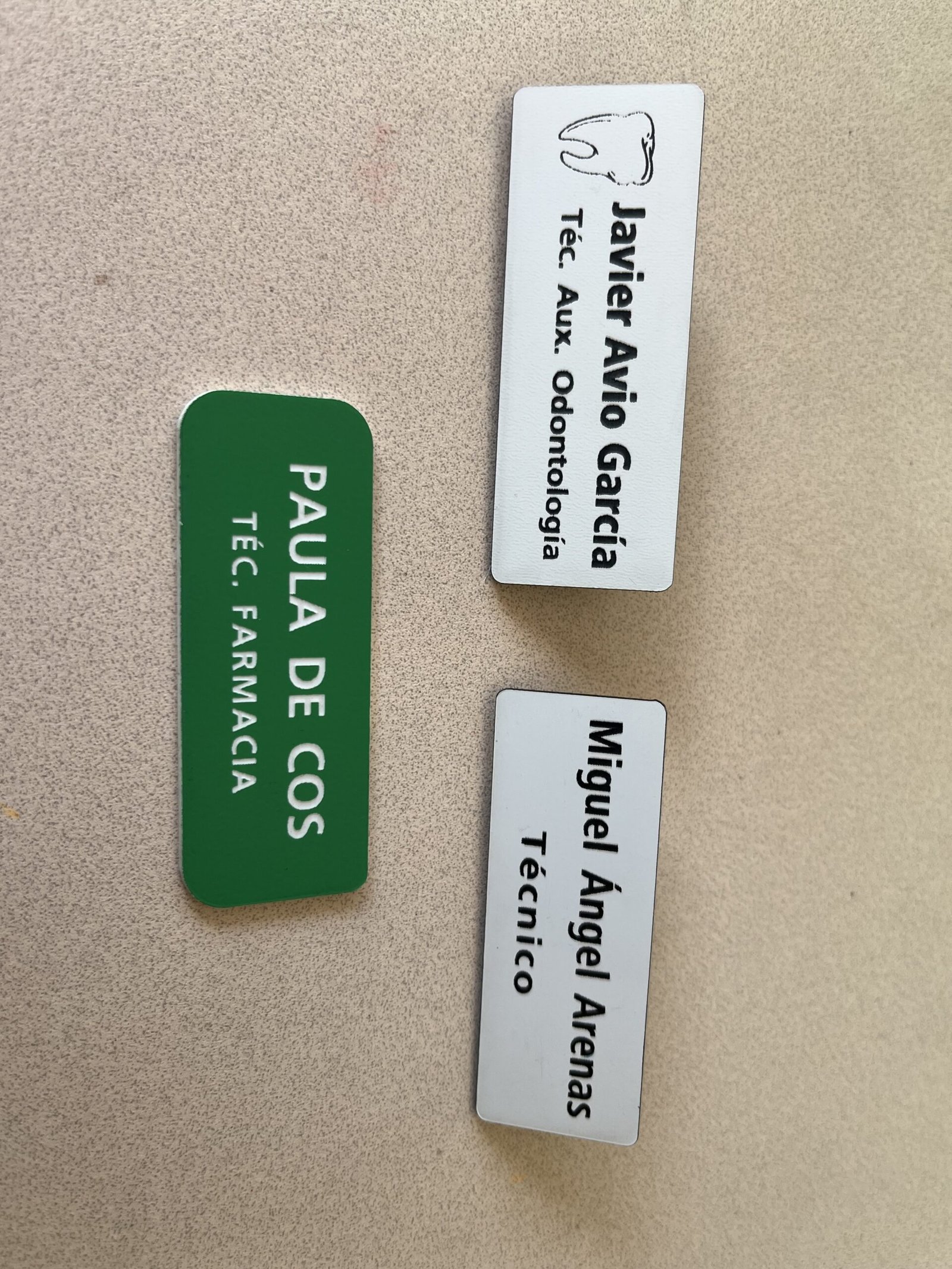 - Placas con nombre y cargo